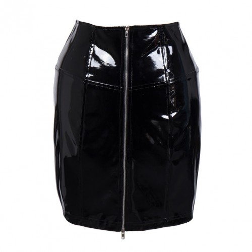 Leicht ausgestellt mit angenähtem Bund. Größen: S, M, L, XL. Metall-Reißverschluss vorne. Leicht ausgestellter Minirock von Black Level komplett im knallroten Lackglanz. RV aus Metall.
