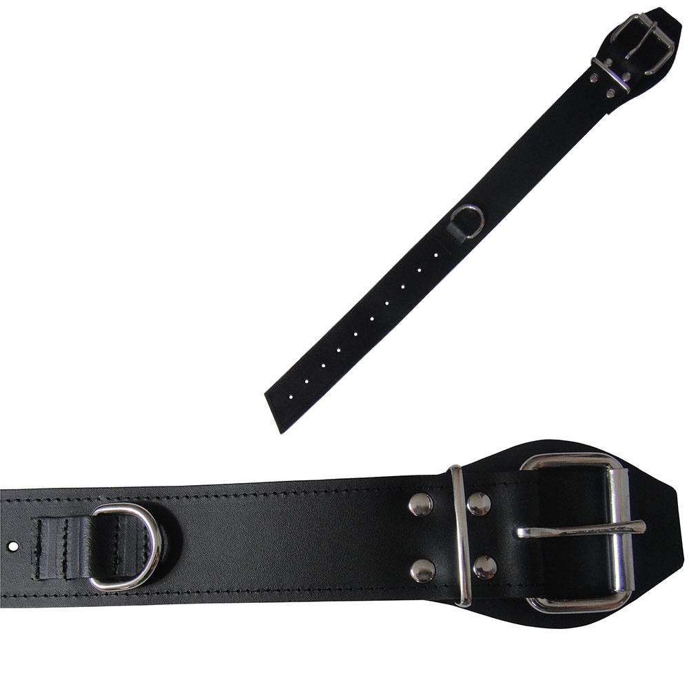 Strong Leather bondage Belt with D-ring for extra fixation during body-bondage or for bondage in combination with our BDSM-furniture. The thick but supple Belts are high quality finished and stitched leather all around.