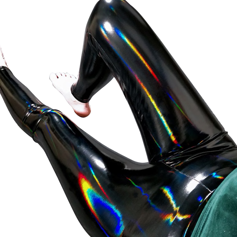 Prepare to dazzle in these skin-tight shiny multichrome leggings. Wear these to your favourite fetish party or add some extra flair to your casual, kinky outfit; you'll be sure to draw all the attention either way!