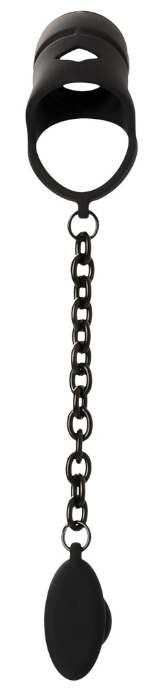 Der Black Velvets Peniskäfig mit Analplug kombiniert einen Peniskäfig mit einem Hodenring, der über eine robuste Kette mit dem markant gerippten Analplug verbunden ist. Er bietet nicht nur ein fantastisches Tragegefühl, sondern ist auch optisch äußerst erregend und ein aufregendes Accessoire für Kontroll- und Keuschheitsspiele.