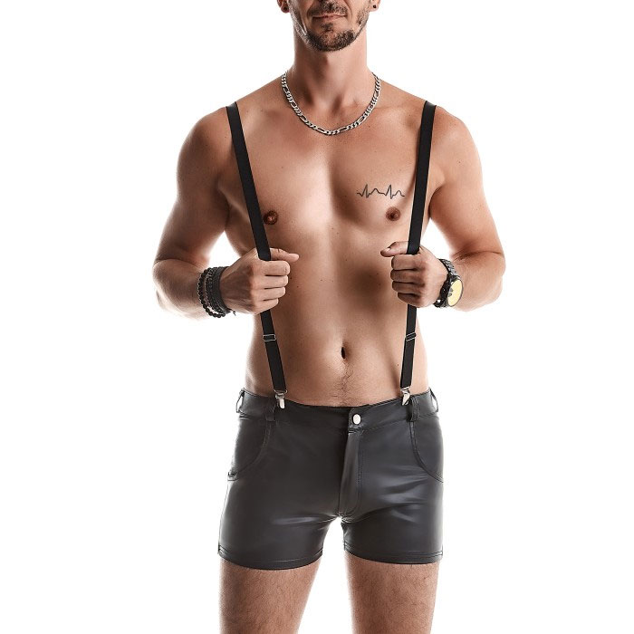 Schwarze Hosenträger.