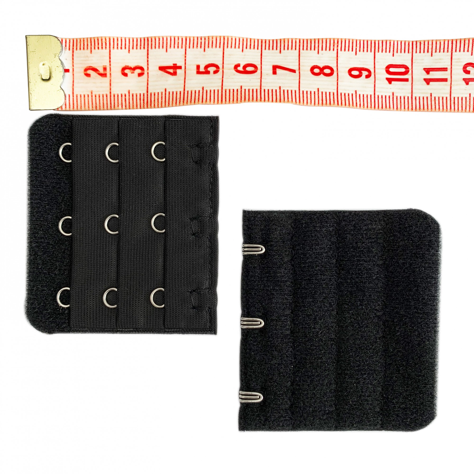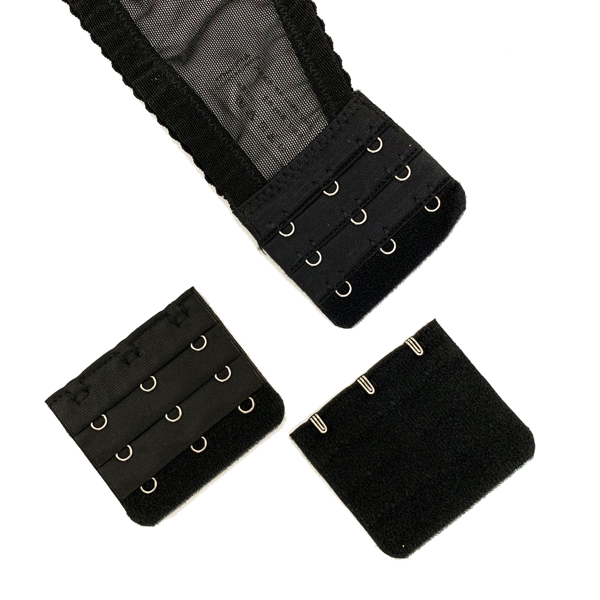 If your (pocket) bra is too tight or too small, but the cup size is good, you can easily increase the chest circumference by placing 1 or more extensions at the back closure.