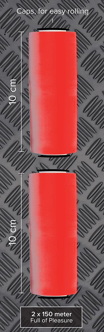 Easy Bondage Wrap 2x 150 meter Full of Pleasure. Extra Thick for Easy Restraint. Does Not Stick to the Skin. Available in the colours Red, Black and Clear.