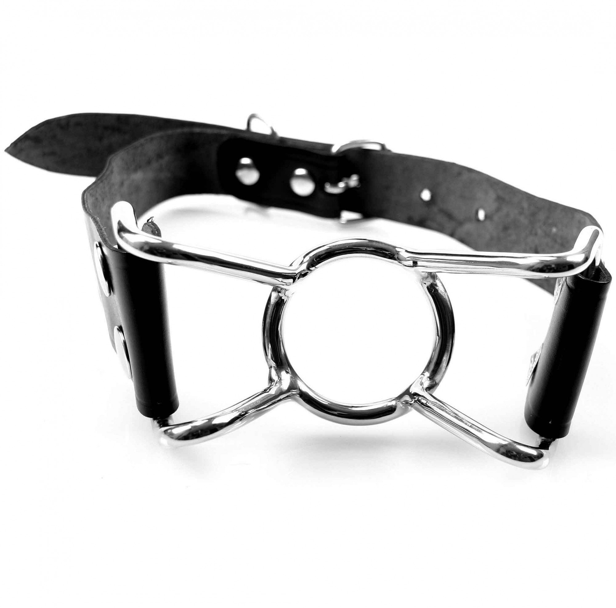 The Spider Mouth Gag is beautifully finished with black leather and silver studs on the sides and an O-shaped ring for the mouth. Kinky and sexy to put it on your slave during your role play! Easy to fasten and adjust thanks to the multi-hole leather and silver seal. Made of leather and stainless steel.