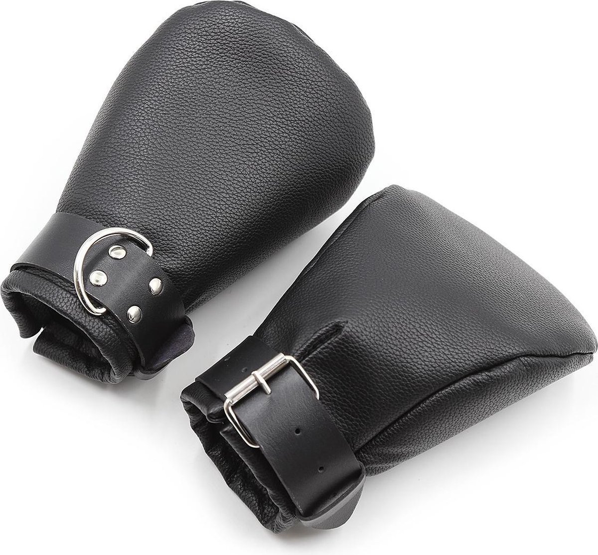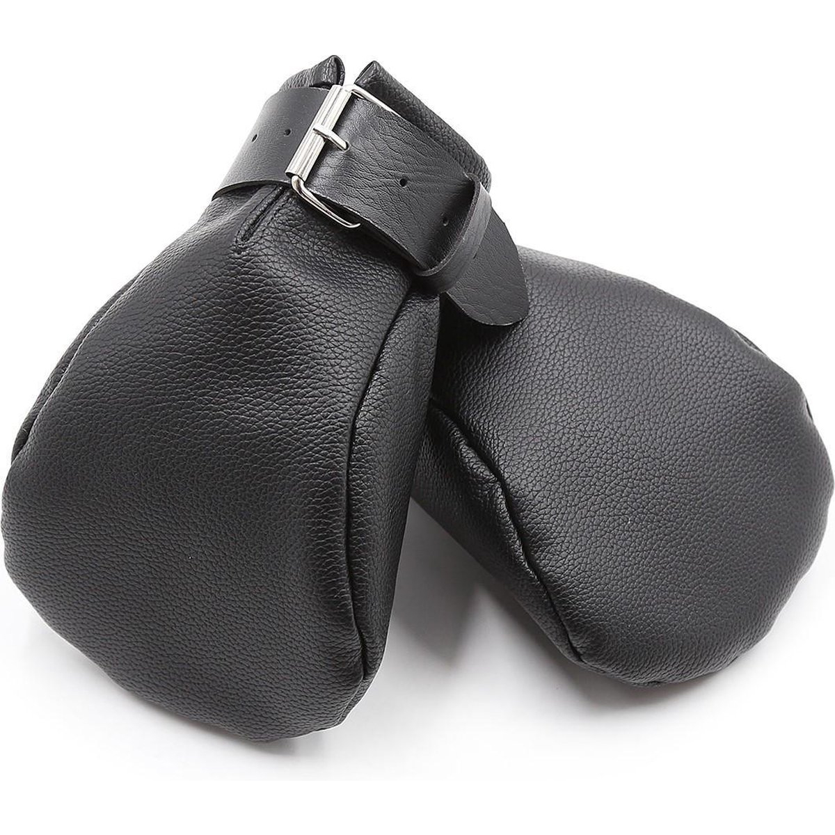 These Padded imitation Leather Fist Mitts are wonderful at containing busy hands and fingers. These mitts are made of fine pu-leather embroidered over soft padding. Each of the padded mitts has a large D-ring on a wide buckle strap for cinching down on the wrist and attaching to multiple points for varied bondage possibilities. Designed for a tight fit, this design forces the wearer to keep the hand in a fist. Removing the ability to open the hand is a higher level of restrictiveness and can be appreciated by the bondage lovers.