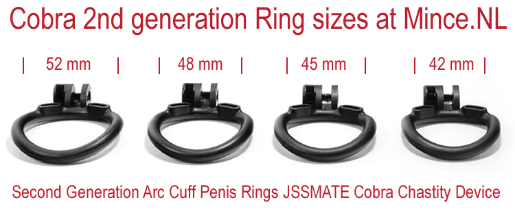 And with the 4 cock rings, varying in a diameter of 42, 45, 48, 52 mm, there is always a perfectly fitting Cobra Chastity Cage to lock up your slave cock.