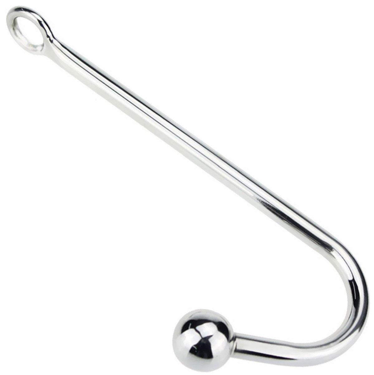 Couples who want to combine the visual and sexual pleasure of rope and anal play would find the Anal Hook an ideal item to add to their collection. The Anal Hook features a stainless steel ball that is inserted into the anus. The open ring can then be combined with rope to put a pulling pressure inside the rectum. Put your imagination to work and create whatever intricate rope configurations you desire. The way your partner moves when tied determines how the steel ball will move inside of their anus. There's 5" of insertable length (the ball and a portion of the hook). The anal hook rests against the back, while you use the ring (1.5" in diameter) to connect your favorite rope.