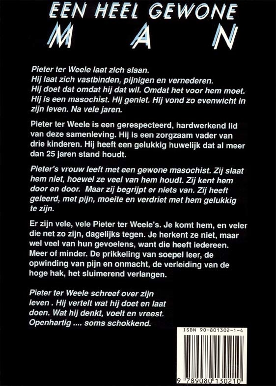 Hij laat zich vastbinden, pijnigen en vernederen. Hij doet dit omdat hij dat wil. Omdat het voor hem moet. Hij is Masochist. Hij geniet. Hij vond zo evenwicht in zijn leven. Na vele jaren.