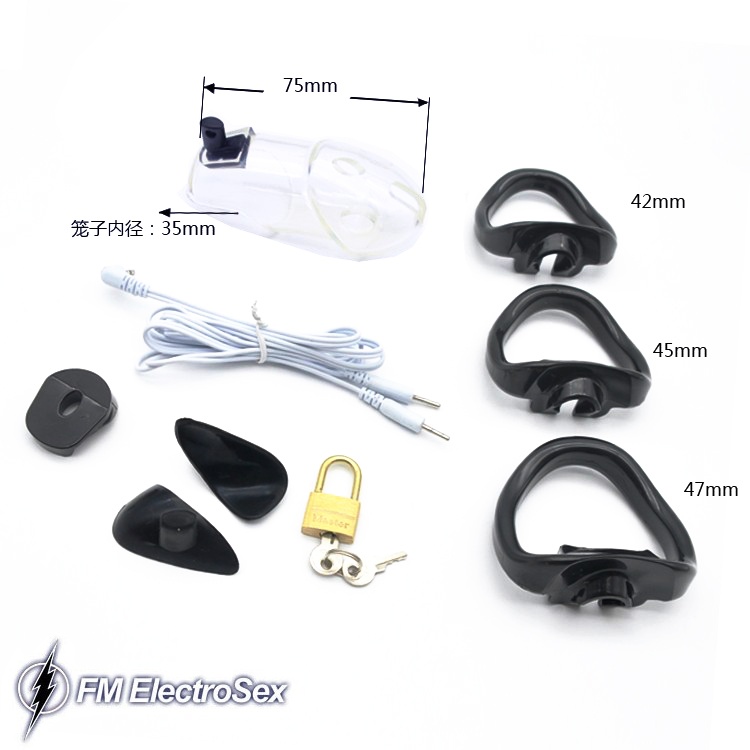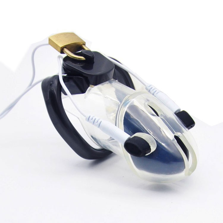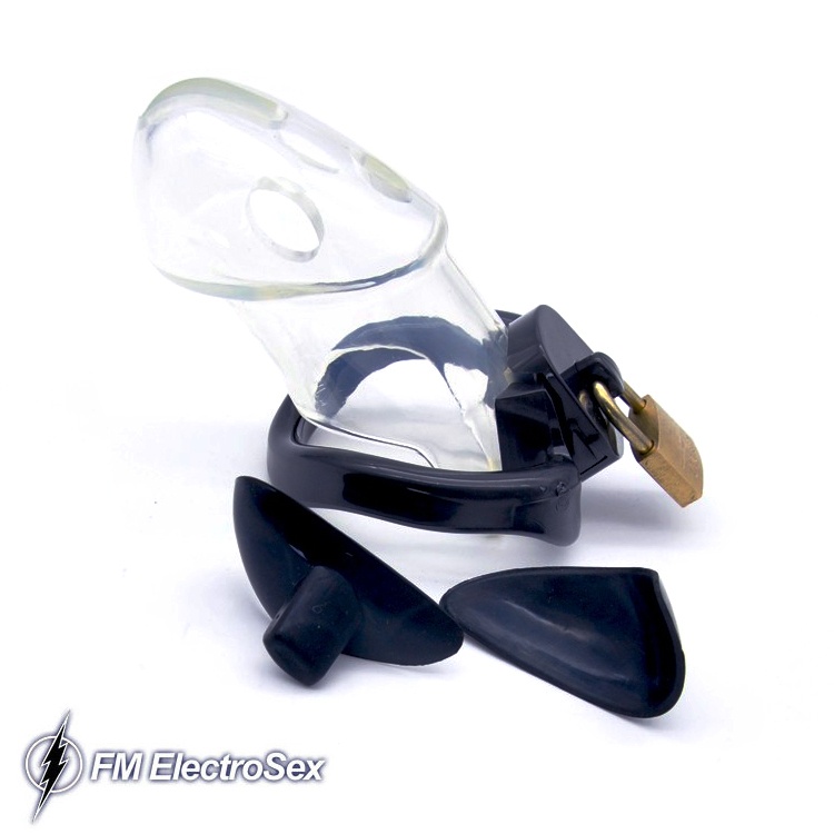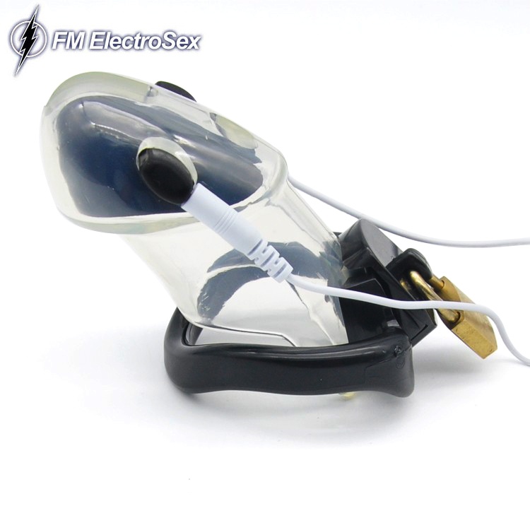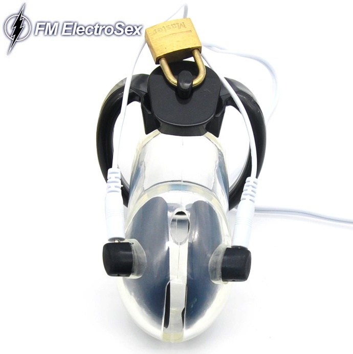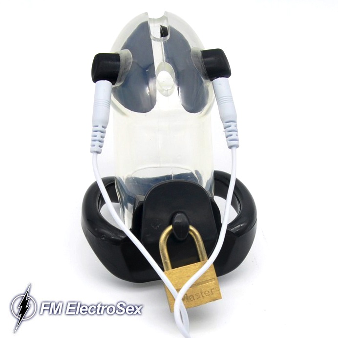 Lock 'em and shock 'em! As if the lockable clear chastity cage wasn't humiliating punhisment enough, hook up the removeable electrodes to your favourite powerbox and watch the sparks fly! A very complete set including everything you need to customize your locked in experience!
