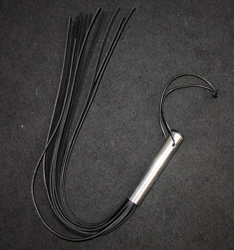 Whip handle made of polished aluminum with leather threads.