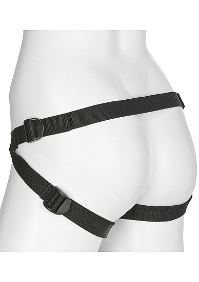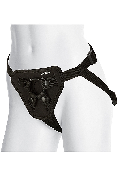 The Doc Johnson Corset Harness is built for comfort and rigorous play. It's the epitome of stylish and is easily adjustable to 69" with pull-to-tighten straps, open crotch and rear, laced corset back, and a snap front for swapping out attachments. Made of smooth black neoprene, the Corset harness works with all Vac-U-Lock attachments as well as strap-on compatible toys.
