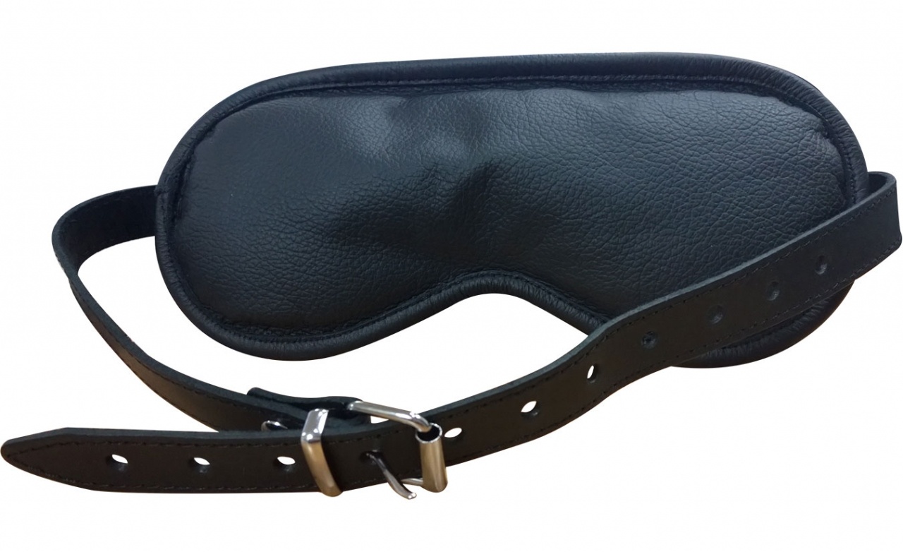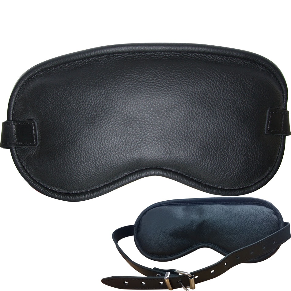 Adjustable strap allows this leather blindfold to be pulled snugly around the head. It fits comfortably and cuts off all light! Leather lined, and with very soft comfortable padding.