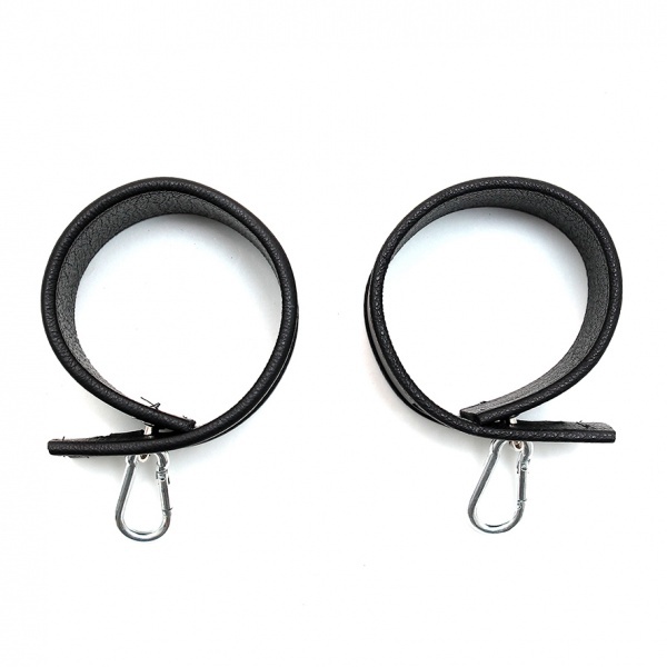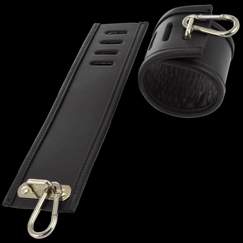 The cuffs come with 2 carabine hooks but can be locked if you use padlocks instead.
