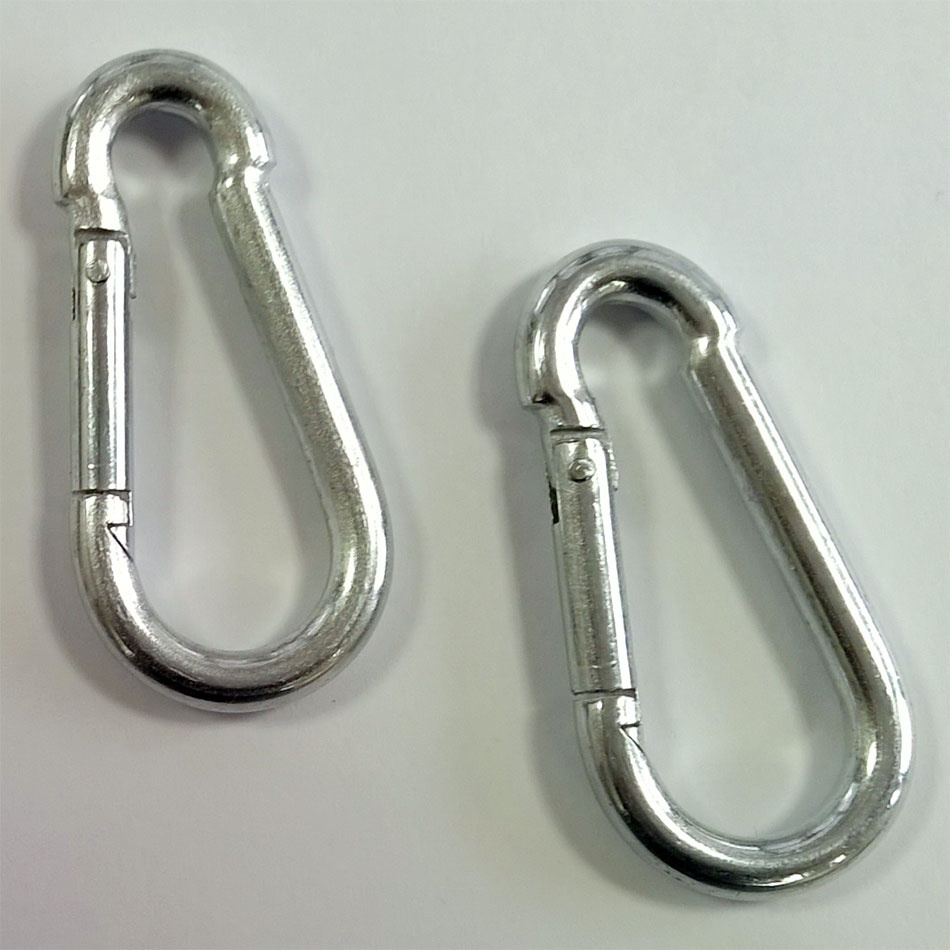 Solid and safe Steel Carabiner hook for bondage. Click your cuffs together, or tie it to the end of the rope and snap it to the D-ring for easy and quick release.