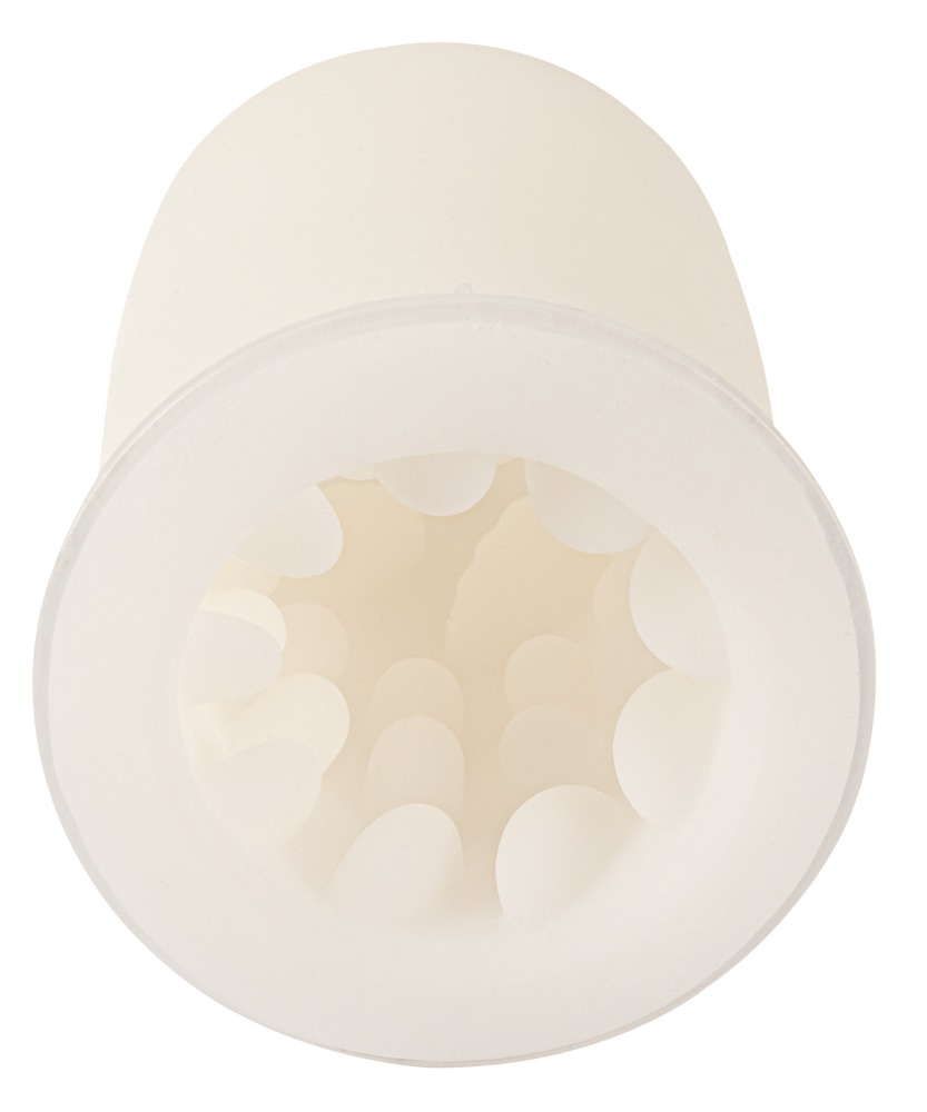 De zachte, rekbare sleeve in een neutrale look is aan de binnenkant voorzien van talloze zachte structuren die de penis intensief masseren. De sleeve kan worden verwijderd voor eenvoudige reiniging. De stijlvolle masturbator kan (stof)veilig en discreet opgeborgen worden met de bijgeleverde beschermkap.