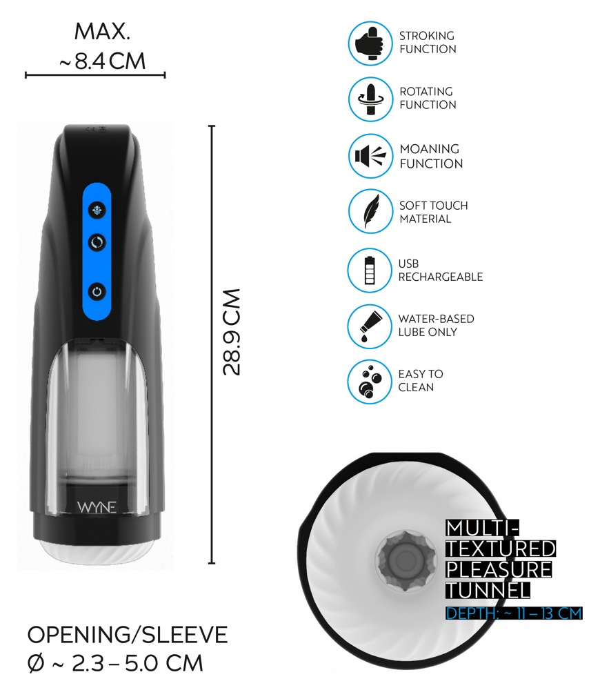 Krachtige masturbator 09 van WYNE, die de penis rondom verwent in de opwindend roterende binnenhoes die op en neer beweegt. Sexy gefluisterde kreuntjes via de meegeleverde koptelefoon zorgen voor sfeervolle achtergrondmuziek.