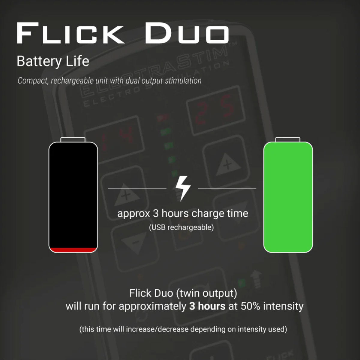 Flick Duo Dual Output Stimulator Multi-Pack Specifications:
