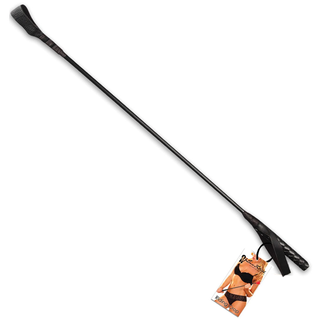 Add a sturdy crop to your collection and always have a wicked tool on hand for spankings and kinky play! This riding crop delivers a sharp and certain bite for when you want to kiss your partner with a touch of delightful pain. Made out of vegan friendly leather, this crop has a textured grip that helps you keep your grip as you play. The firm rod at the center is made of a glass fiber that is firm with enough flex to handle impact. The triangular end is perfect or precise and specific impact play. To clean, spray with a toy cleaner or a mixture of alcohol and water.