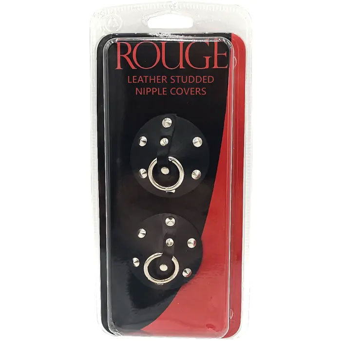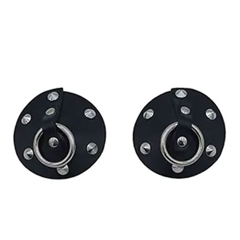 The Nipple Stickers SM from ROUGE are round (Ø 60 mm) and are made out of stylish black real leather. Each sticker also has decorative studs and a (restraint) ring on it. The nipple stickers can be stuck on easily – they can also be used several times if the protective film is reapplied before they are stored.