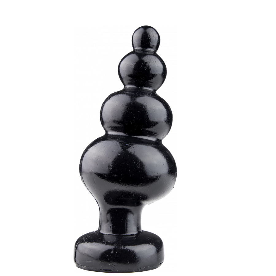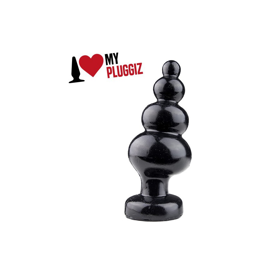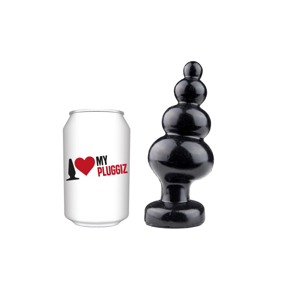 This One More plug from Pluggiz is a black vinyl sextoy without phthalate. It has a Pagoda shape that allows progressive insertion.