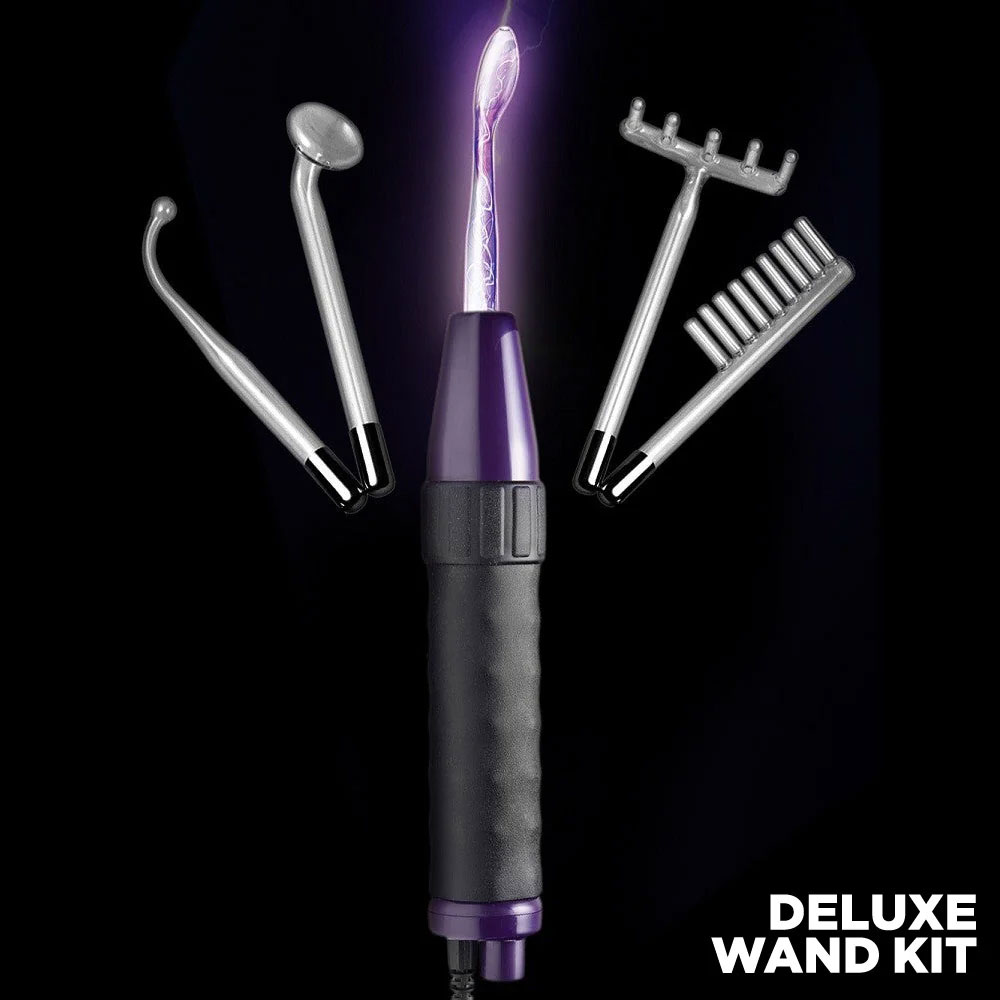 Ontdek visuele én erotische prikkeling met de ZEUS Twilight Violet Wand Kit – Deluxe Edition. Deze elektrostimulatie-wand combineert lichtkunst met zinderende sensaties en biedt zowel visueel als lichamelijk genot.