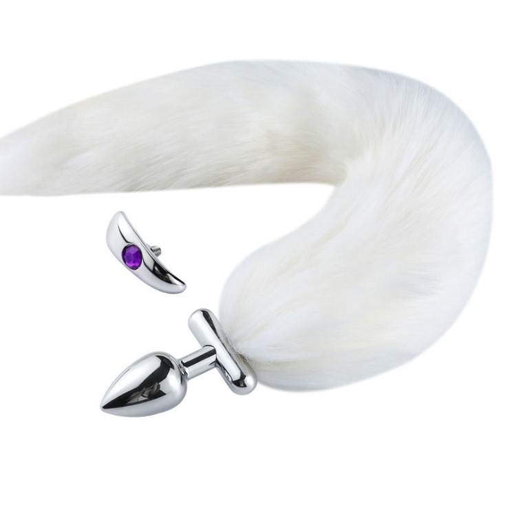 Slide the gleaming metal plug into your partner. Let them enjoy the full feeling. To make it more interesting, heat or cool the plug before insertion and really let them react to the new sensations. Once inserted, you can enjoy the bushy fox tail protruding from them. The plug is made from an aluminum alloy with a tapered tip and flared base. It is non-porous, easy to clean, and works with all types of lubricant.