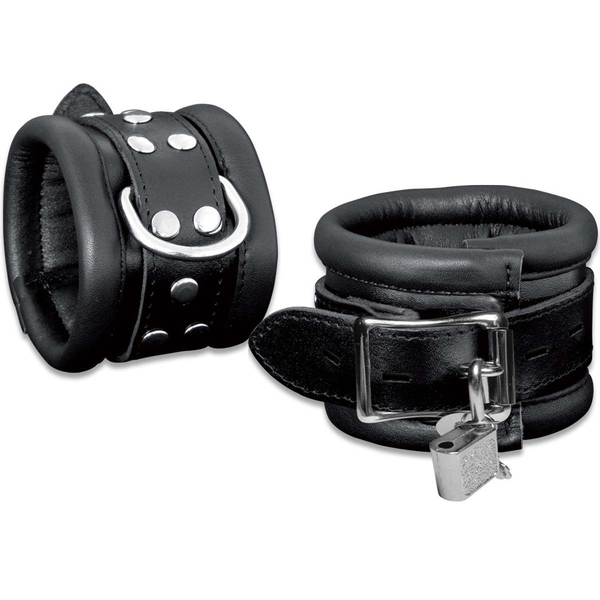 Luxury Black padded Leather Feettcuffs 2.6 inch width by Saxos