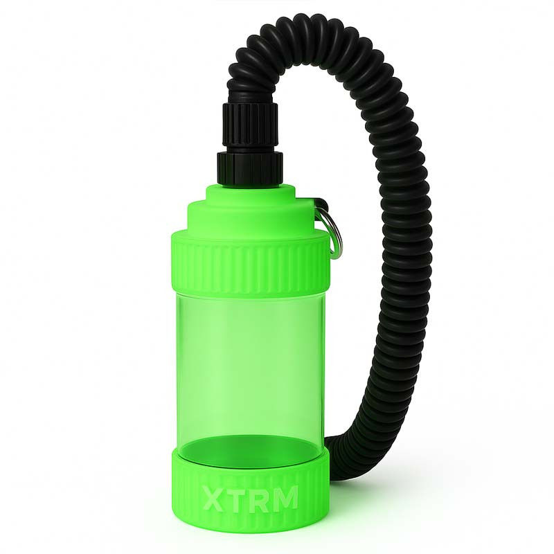 A side carabiner connection (not included) allows you to easily attach the tank to a harness, belt or toy bag - ideal for playrooms, events or outdoor sessions where you need to move around but want to keep both hands free. The tank also works for waterplayers - robust, hygienic and discreet.
