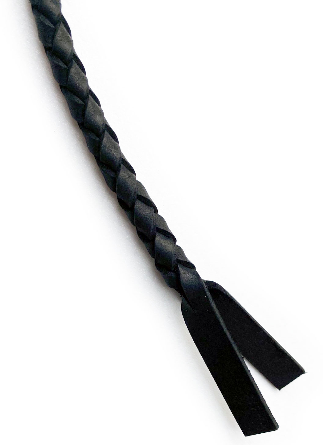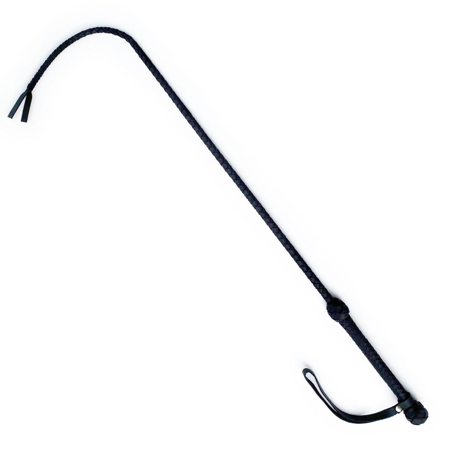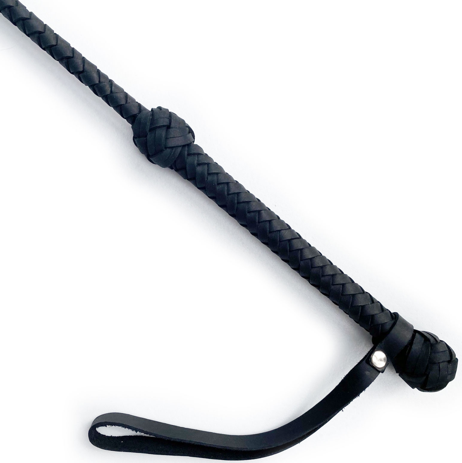 This sleek, elegant, precise, and potentially vicious whip is wielded with a 0.7 inch thick braided leather covered handle.
