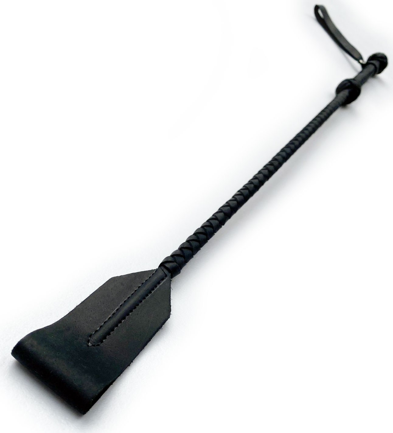 Care for a little pain with your pleasure? When spankings just aren't cutting it anymore, it's time to try something new! This sexy riding crop dons a 4 cm / 1.6 inches wide head, which spreads out the impact zone to reduce marking while delivering a snap that won't soon be forgotten. The braided 20 cm / 7.9 inches long Real Leather handle to craft a balanced whip.