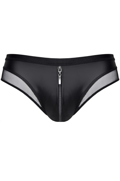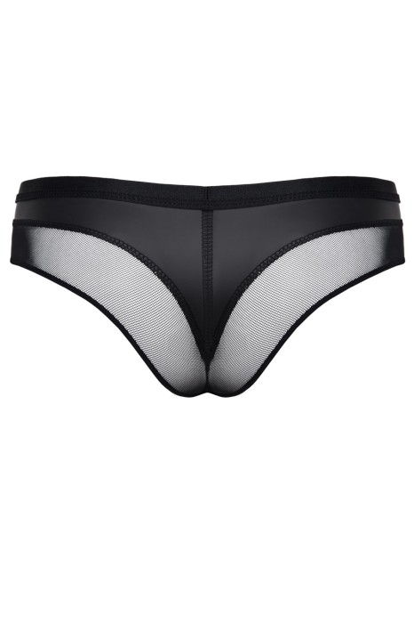 At the back, the combination of wetlook and mesh emphasizes the shape of the buttocks with a thong-like shape.