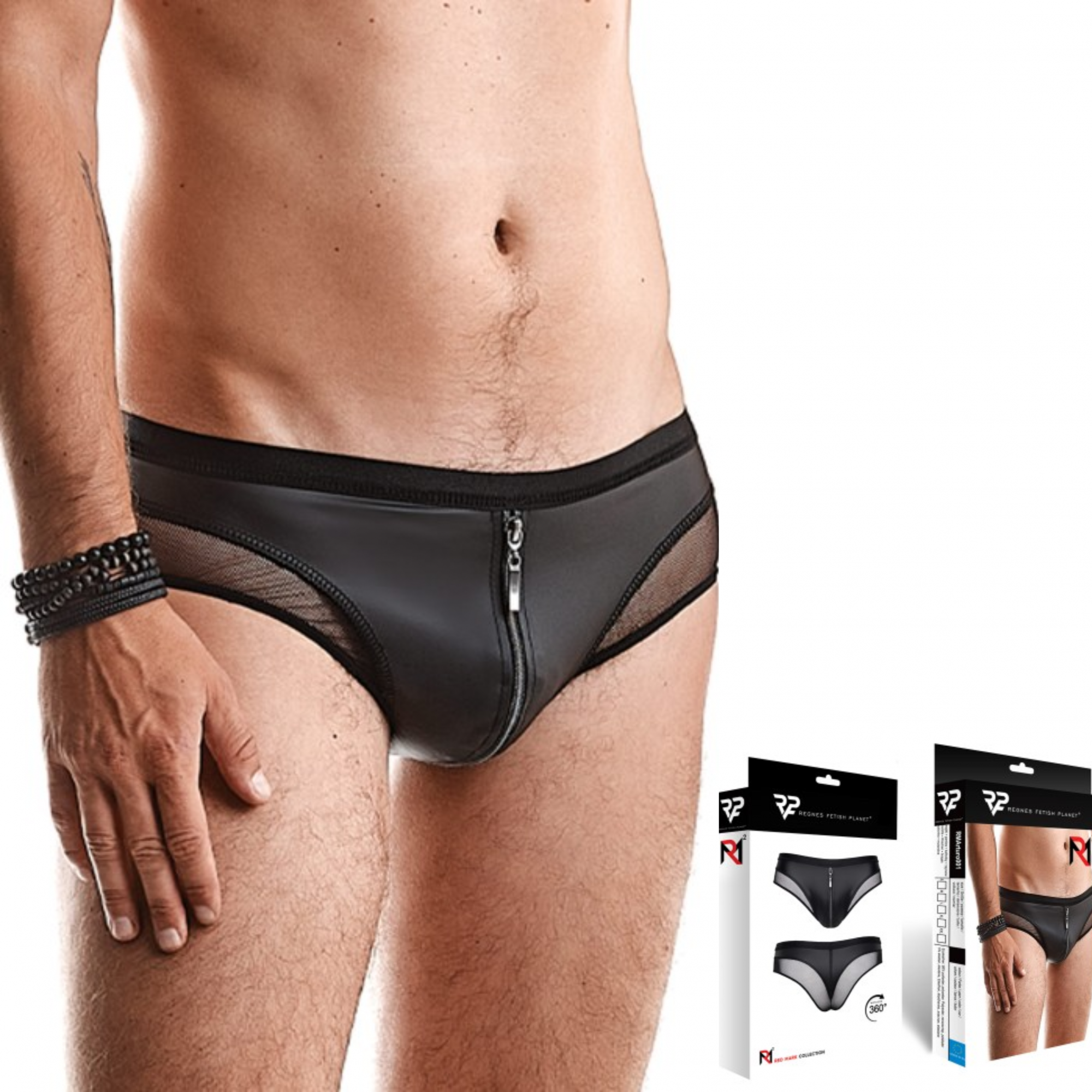 • 360° wetlook, One-way zipper - 1x, Fly, Reinforced stitching